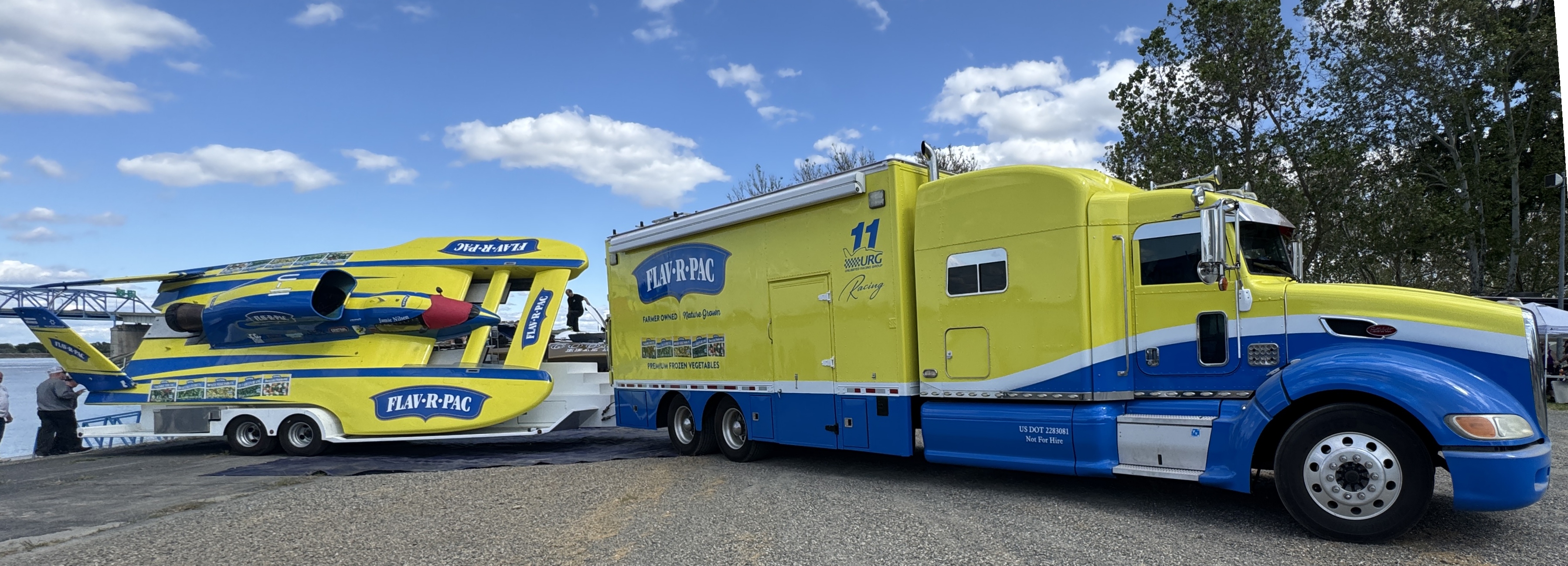 The boat and truck in Tri-Cities, Washington for testing less than a month later showing off our new sponsor!
