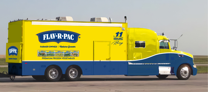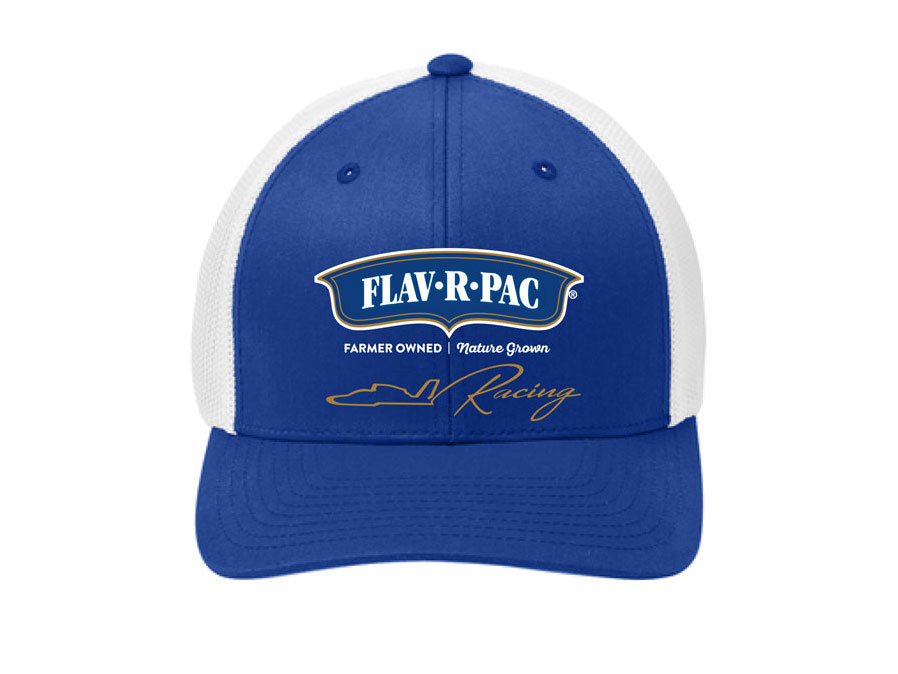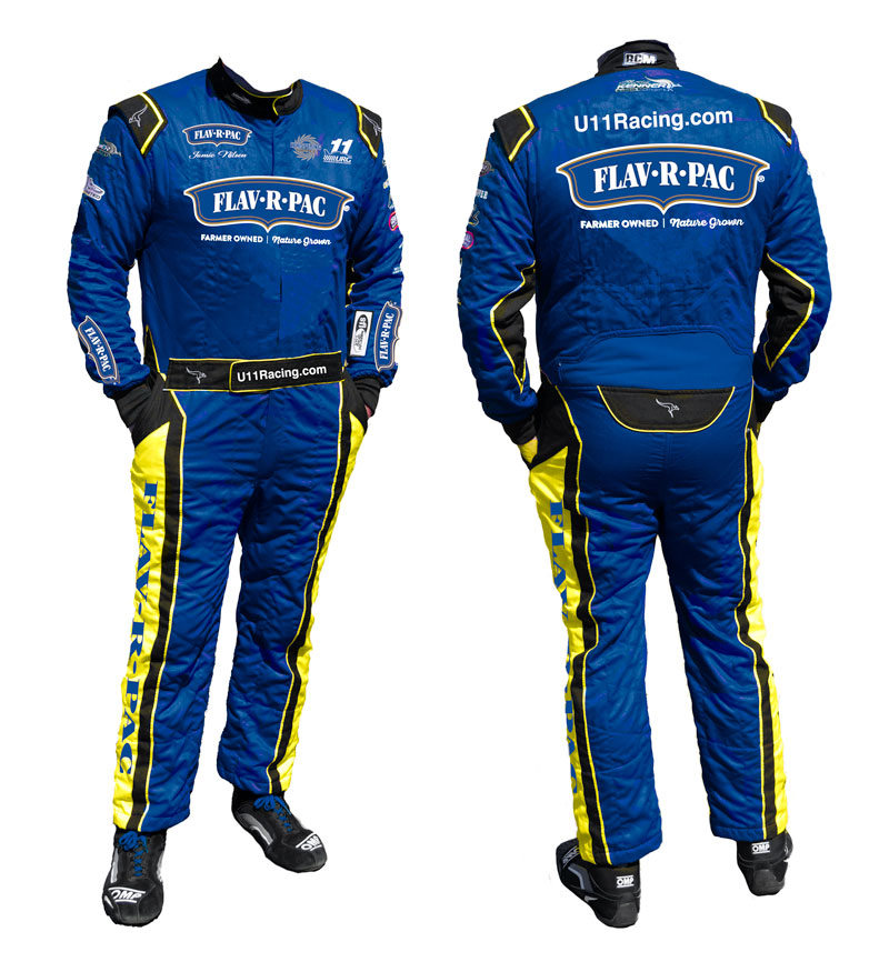 In Photoshop I modified the driver's suit from 2024 (red) into FLAV-R-PAC® branding (blue) for 2025.