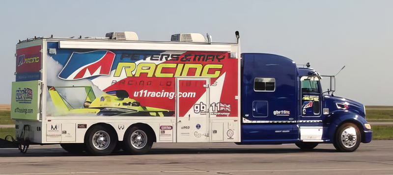 The truck is handled the same way as the boat. Start white, build the graphics in Photoshop and Illustrator, then warp them to make sure the graphics are shaped correctly. Typically, the truck is vinyl-wrapped as it is quicker than painting.