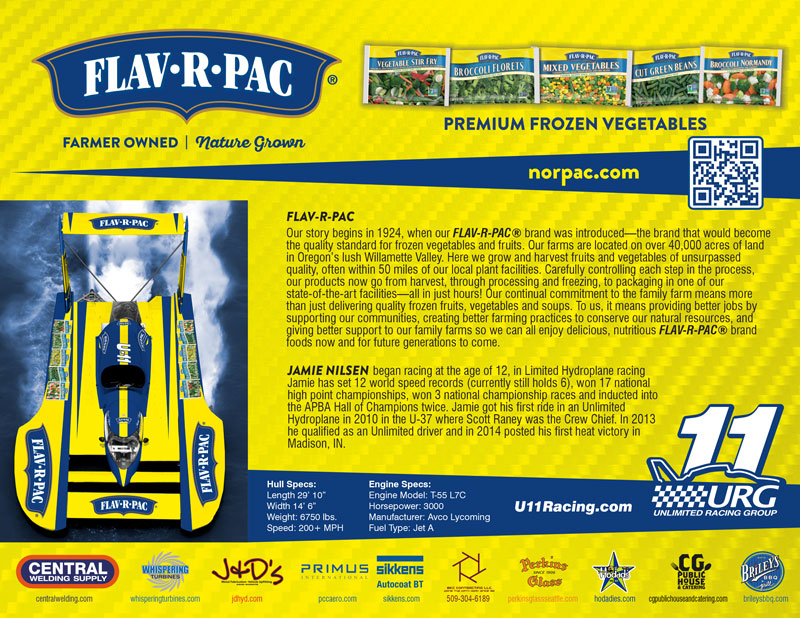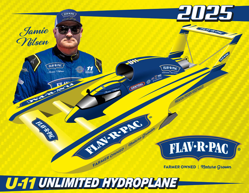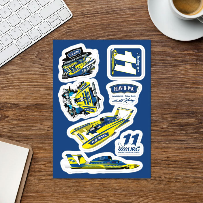 Illustrating the boat to be used for 2-dimensional products is next in line. Marketing giveaways and hero cards are the best way to get our sponsor’s message out to both new and long-time fans. Stickers, key chains, patches, and mugs are used to generate interest and excitement in the Miss FLAV-R-PAC®!
